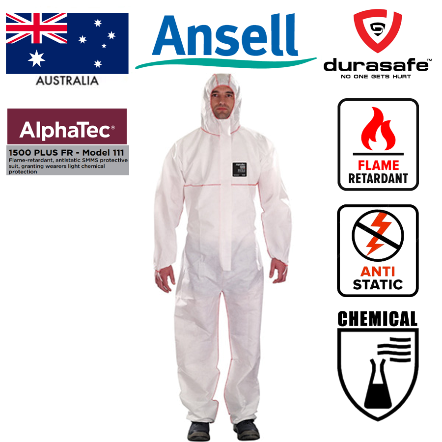 ANSELL AlphaTec 1500 PLUS FR Flame Retardant Antistatic Chemical Resistant Disposable Coverall White Size S-XXXL