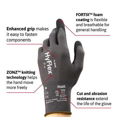 • Elevated comfort: HyFlex 11-840 safety gloves’ ZONZ Comfort Fit Technology relieves tension,for optimal comfort