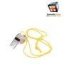 Whistle has a cork ball in the whistle chamber and a lanyard ring already attached.
