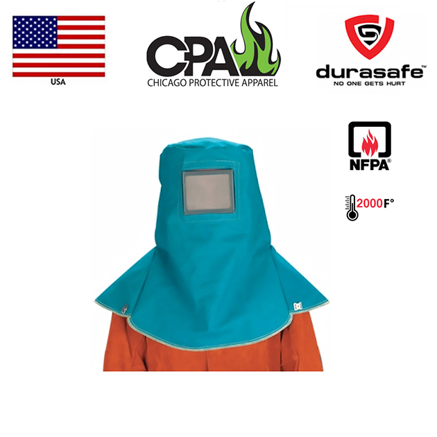 Canvas duck material fabricated over a welding helmet with ratchet headgear. Lexan® window with 50 mesh screen front. Protects head and shoulders from rebounding particles and abrasives.