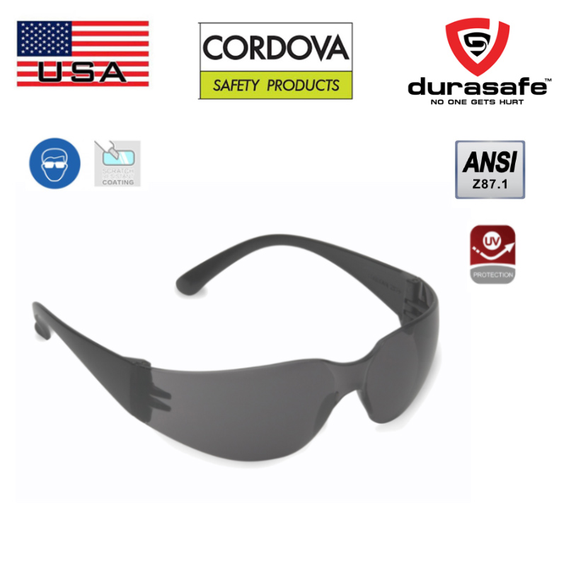 CORDOVA’s Bulldog™ safety glasses offer a single wrap-around lens, a spatula temple design, integrated nose piece, and a scratch-resistant polycarbonate lens. They meet ANSI Z87.1+ Standards and provide 99.9% UV protection.