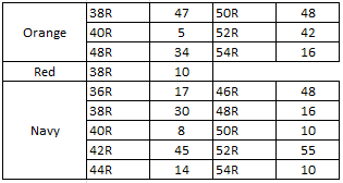 | Size | 36, 38, 40, 42, 44, 46, 48, 50, 52, 54 |