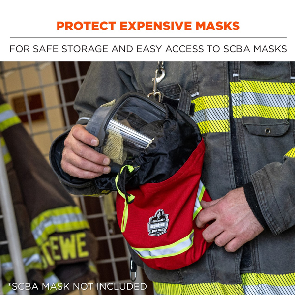 ERGODYNE 5080L Arsenal Firefighter SCBA Mask Bag with Fleece Lined & Drawstring Closure Red