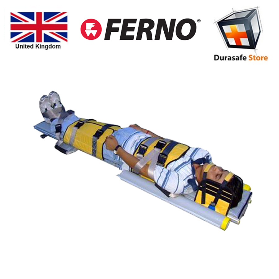 • Various straps secure the chest, arms, thighs and lower legs. The head is held in place by a 3 point, non-slip forehead strap. I figure of eight strap supports the feet