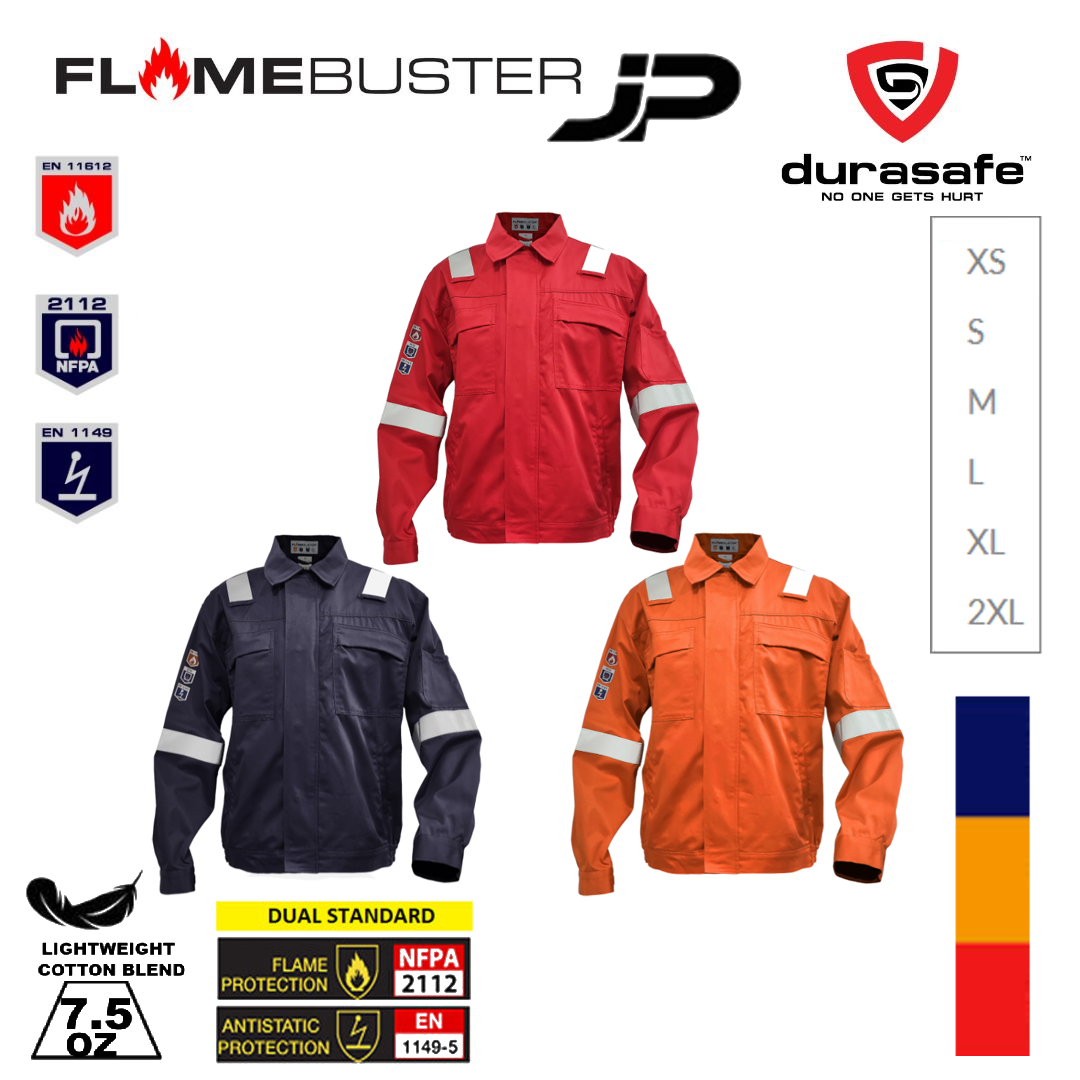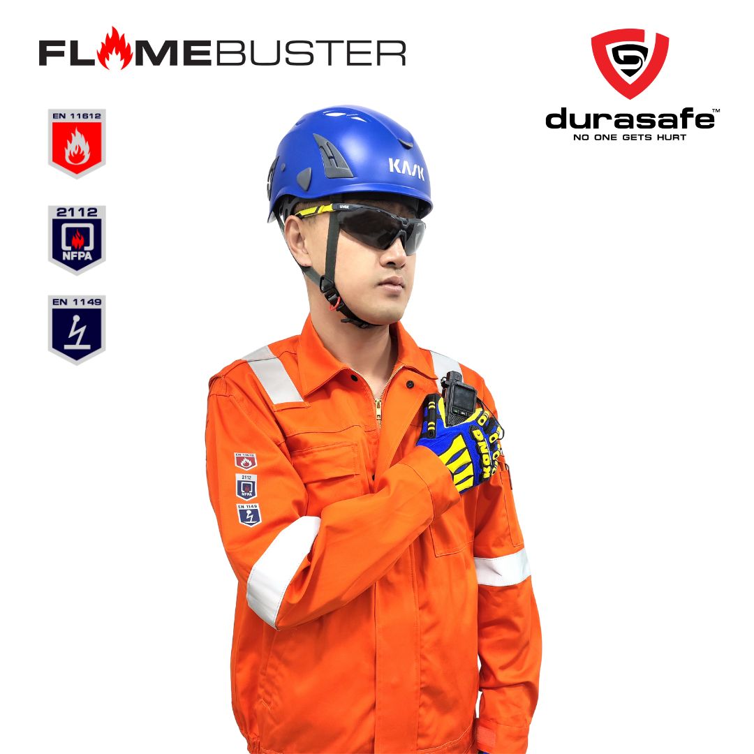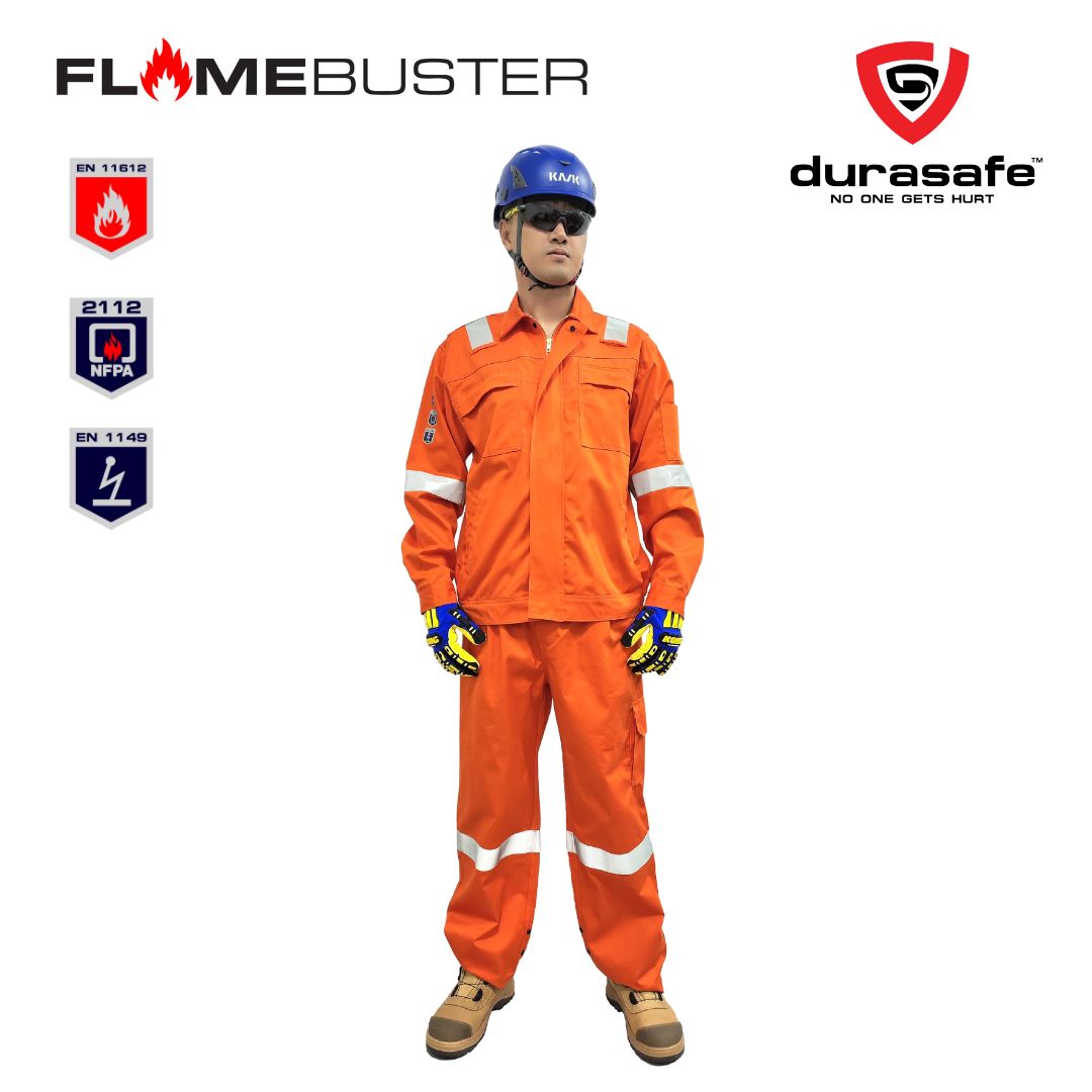 Optimized for comfort & mobility, the innovative Flamebuster FR Jacket & Trousers design makes it easier to move when working in restricting environments, while reducing chaffing at the same time. Durability has been worked into every detail of the design and construction to ensure a long service life.