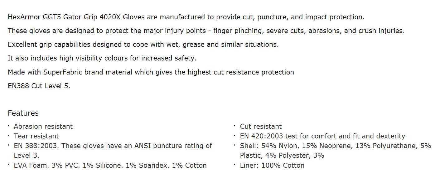 Introducing Hexarmor 4020X Gator Grip GGT5 Oil & Gas Industry Impact, Cut & Puncture Resistant Glove Yellow, the most complete glove for the oil and gas industry. Gator Grip Technology is a design platform that combines high performance materials engineered to provide industry-leading cut , puncture protection, impact protection and the strongest grip in any oil situation.