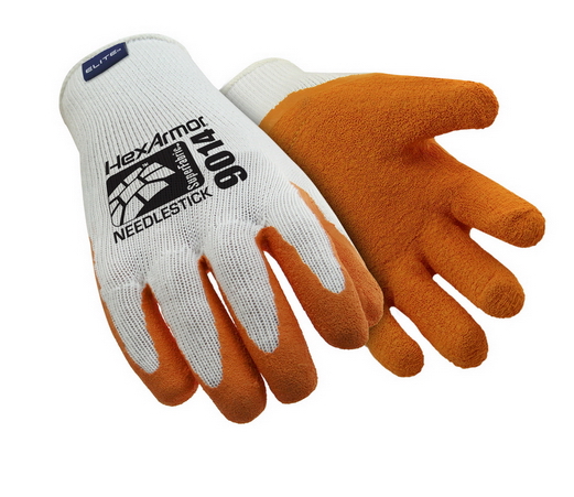 Hexarmor 9014 SharpsMaster II Cut, Puncture & Needle Resistant Rubber Knit Glove Orange, Size S-XL?sets the industry standard for needle protection with innovative solutions for a variety of applications. The Sharpsmaster II? 9014 is a manufacturing breakthrough that utilizes high performance SuperFabric? technology engineered to provide the highest levels of needle and cut protection available on the market. Tested using actual 25 gauge needles, this glove gives end users incredible protection in a single glove solution.