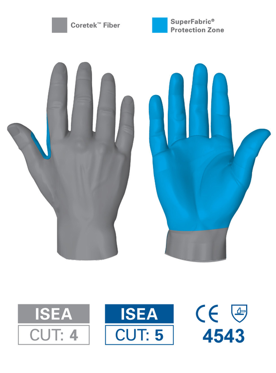 ? Made with SuperFabric? brand material for the highest cut?resistance available on the market? Exceeds ISEA/CE Level 5 (in noted enhanced areas)