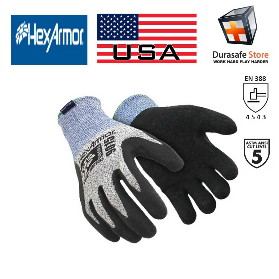 Hexarmor 9015 9000 Series Cut & Puncture Resistant Rubber Knit Glove Grey/Blue, Size M-XXL?gloves introduce innovative industrial puncture protection combined with industry leading cut?resistance, setting the new standard for hand protection. HexArmor? products are engineered to provide users with the highest levels of protection in areas where risk is the greatest.