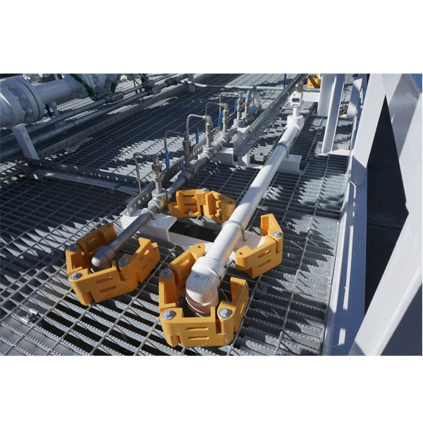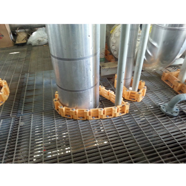Toeboard Links (T5) are designed to easily enclose unwanted openings, gaps, and penetrations found in walking surface areas. Intrepid Toeboard Links are designed to encircle piping of all sizes found in and around grating and deck plate. The Intrepid Toeboard Links are manufactured from our rigid, noncorrosive polyurethane, making the T5 resistant to outdoor exposure and harsh environments.