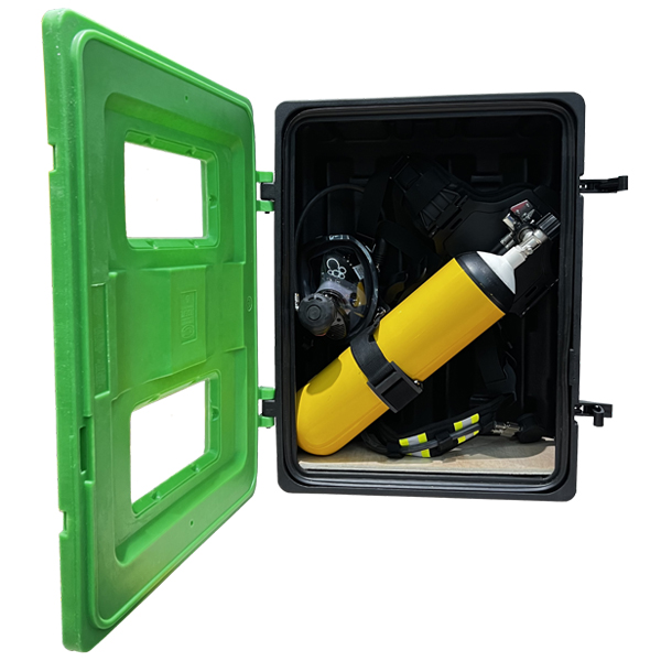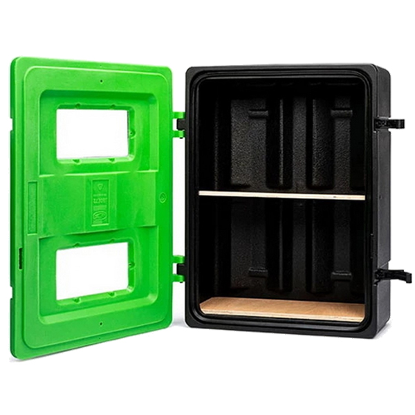 A 720mm tall front loading safety box designed for quick access in emergency situations.