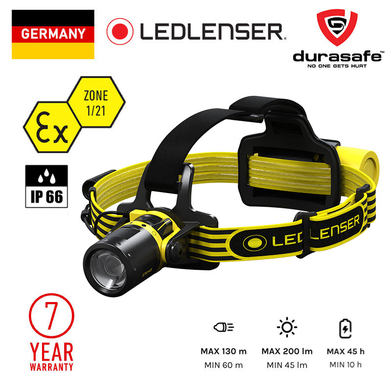 An adjustable & rechargeable hands-free light source for safety and specificity in highly flammable Ex-Zone 1/21 environments for those working around explosive gases, vapours and dust. This headlamp features the patented Advanced Focus System to customise the light beam and a red rear light for others to easily see your location. It has an extended battery life of up to 45 hours.