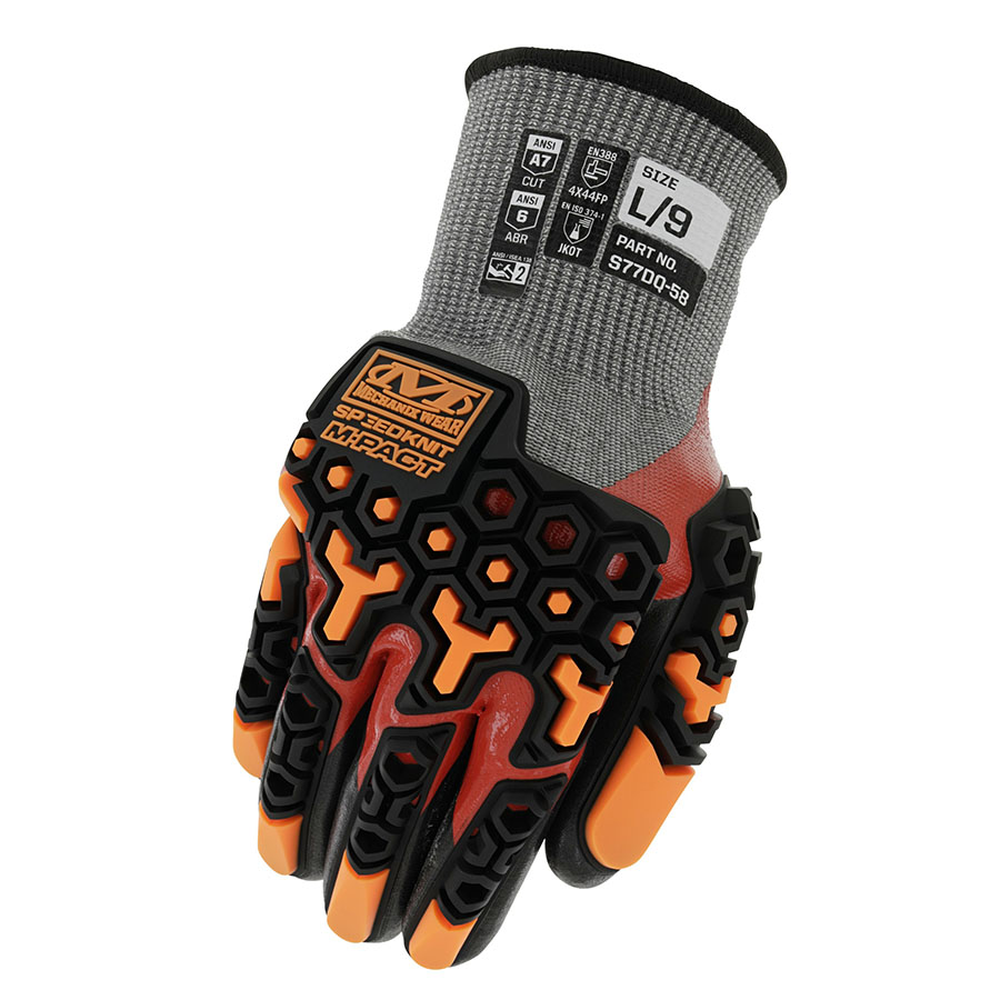 Safeguard against impacts and chemical-resistant hazards with the SpeedKnit™ S77DQ58 Chemical Resistant glove. Featuring an ANSI cut level A7 rating and EN level F cut resistance rated 15-gauge HPPE blended shell that maintains comfortable snug fit. The double-dipped proprietary nitrile bi-polymer coating combines a traditional palm coating on top of a 3/4 coating that extends from the fingers to the back of the hand provides a waterproof, chemical-resistant barrier. An anatomically designed TPR knuckle guard meets ANSI 138 Level 2 impact standards for an added sense of safety without compromising dexterity. The SpeedKnit™ S77DQ58 is rugged protection in the face of oily and wet work conditions from construction to petrochemical hazards.