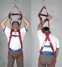 When used with harness incorporated shoulder retrieval D-rings, this lanyard keep the person being rescued in an upright position and reduce the space needed for extraction.