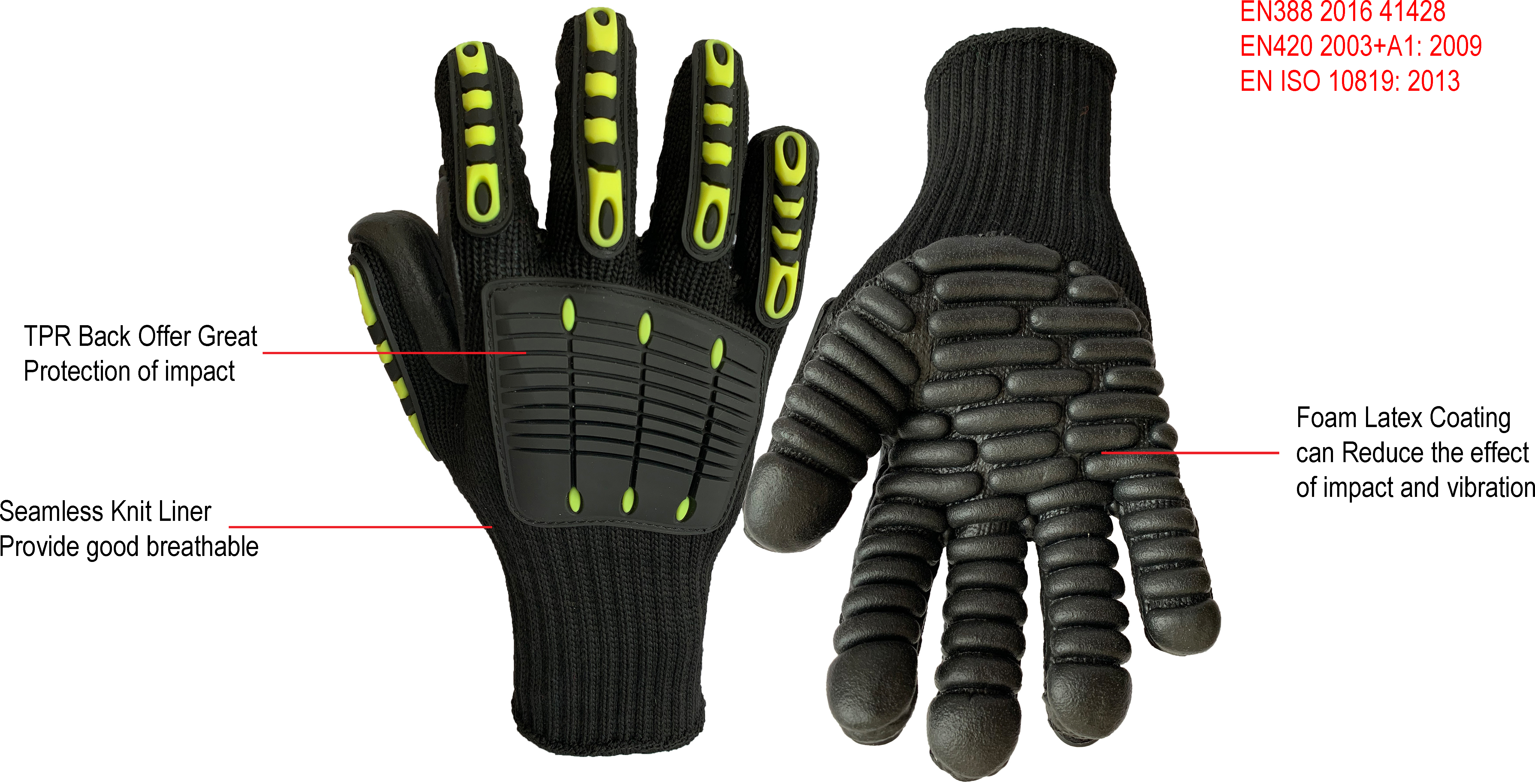 • Shock absorption TPR on glove back to reduce the effects of impact shocks