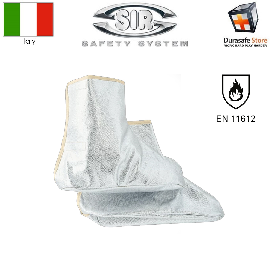Shoe covers in aluminized para-aramidic fibre, with rear velcro closure.