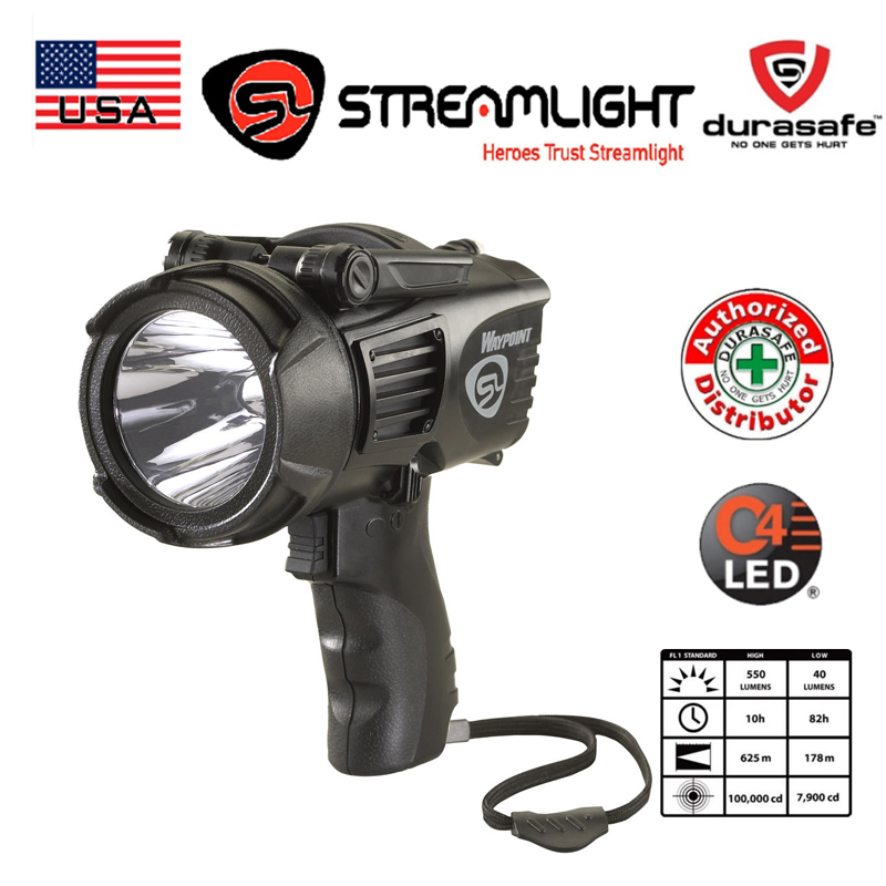 Light Output: High for a super-bright, far-reaching, piercing spotlight: 550 lumens; 100,000 candela; 625m beam; runs 10 hours Low for when a less intense beam is needed and to conserve battery power: 40 lumens; 7,900 candela; 178m beam; runs 82 hours Emergency signal runs 82 hours Deep-dish parabolic reflector produces a long range targeting beam with optimum peripheral illumination. Optimized electronics provides regulated intensity