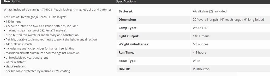 STREAMLIGHT 71600 Handheld LED Flashlight w/Flexible Extension Cable