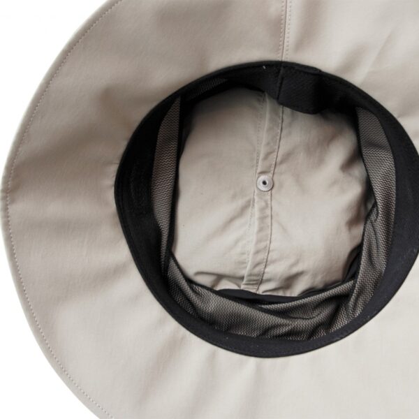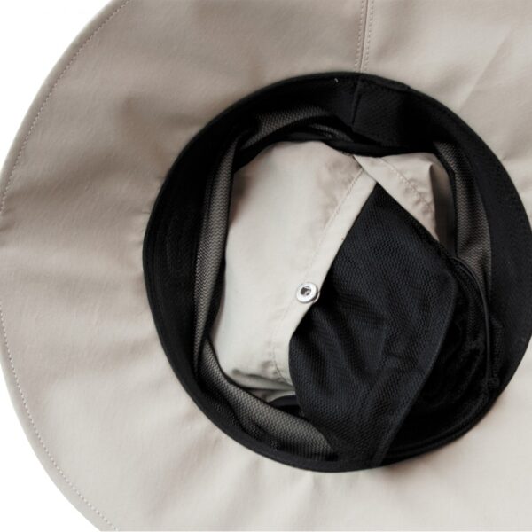 The removable mesh is easily to store in the top of the hat and the whole hat is also foldable in a compact package.