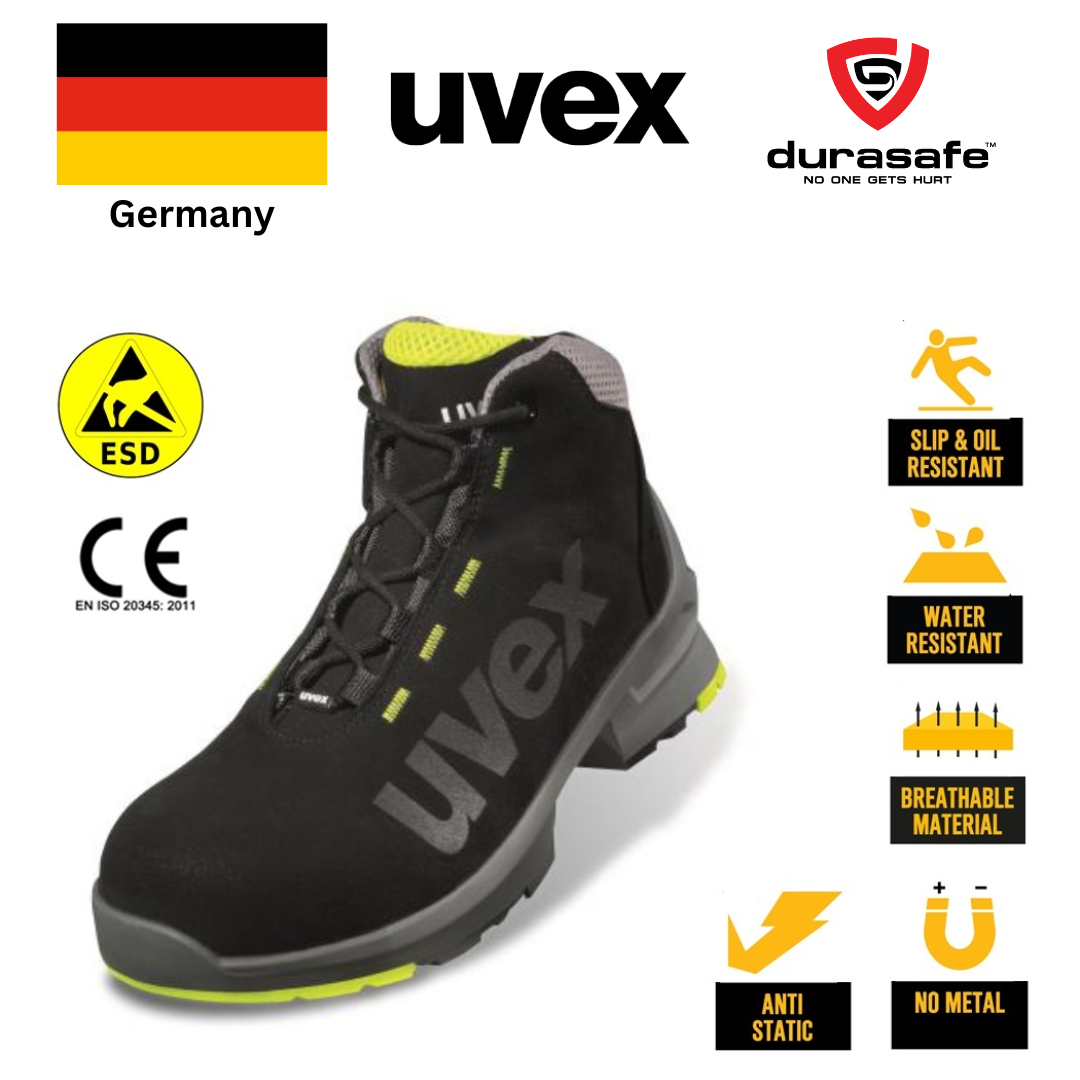 • 100% metal-free uvex xenova® toe cap – compact design, anatomical shape, good lateral stability, no thermal conductivity