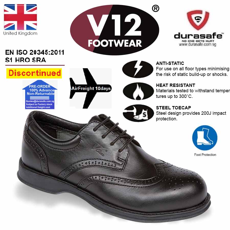 The V12 Diplomat Safety Executive Shoe is a classic leather shoe, that also has many built in safety features.